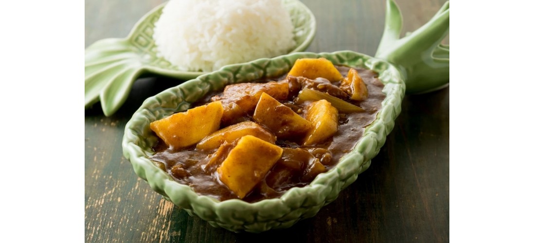 4. 豚肉を加えて炒め、じゃがいもを入れて炒め合わせ、じゃがいもに油がまわったら水を入れる。アクを取りながら煮て、肉とじゃがいもに火が通ったら、2のパイナップルを入れて、10分くらい煮る。